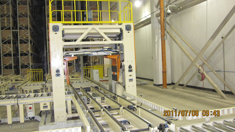 1.主要功能夾抱合分機(jī)是一種將物料和托盤分離或組合的設(shè)備。本設(shè)備通過(guò)夾抱叉、升降機(jī)構(gòu)來(lái)實(shí)現(xiàn)紙箱煙包與托盤的分離,并在相關(guān)...